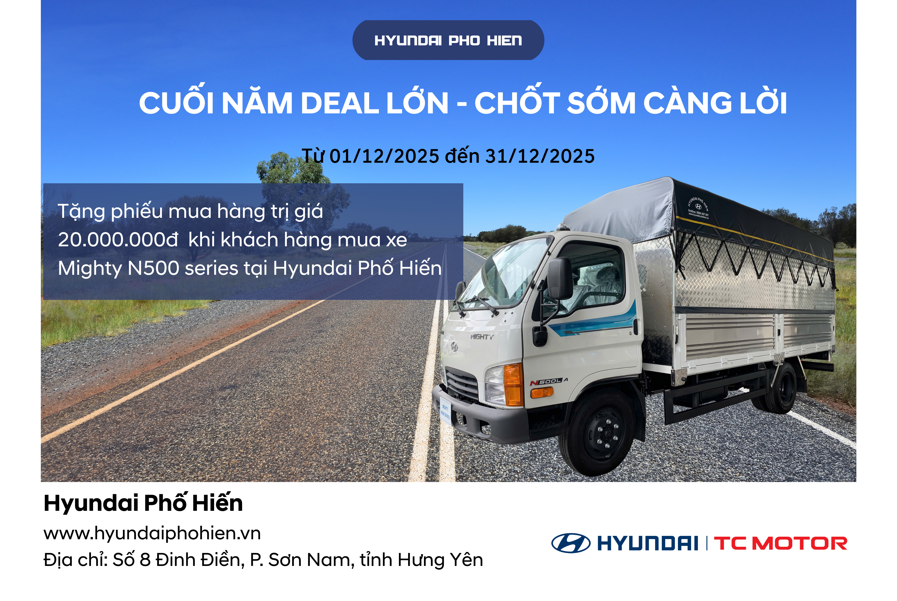 =>Tặng phiếu mua hàng trị giá 20.000.000đ khi khách hàng mua xe Mighty N500 series tại Hyundai Phố Hiến