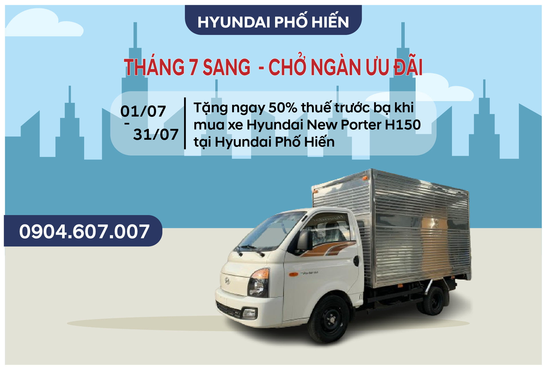 Tặng 50% thuế trước bạ cho khách hàng mua xe Hyundai New Porter H150 tại Hyundai Phố Hiến từ 01/07/2024 - 31/07/2024